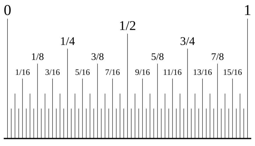 Keywords: Dyadic rational.svg Dyadic rational numbers in the interval 0 1 Own David Eppstein 2008-05-29 rational numbers Files by User David Eppstein from en wikipedia