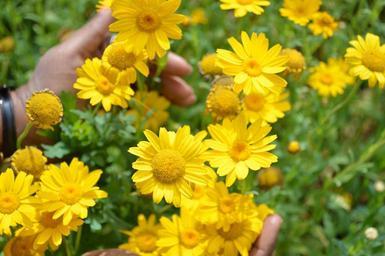 Keywords: dyers chamomile golden yellow flowers plant nature summer blossom medow