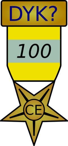 | Keywords: Dyk100CE.svg own User Certes Proposed award for Award for 100 DYK creations and expansions at Did you know Own work by Certes following request at WP GL/I Certes en Original upload log en wikipedia FtCG page en wikipedia Dyk100CE svg wikitable Date/Time Dimensions User Comment - 16 07 2 January 2010 203 × 431 6 180 bytes Certes w en <nowiki> Proposed award for Award for 100 DYK creations and expansions at Own work by following request at WP GL/I </nowiki> Wikipedia Did you know awards | ||||