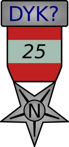 | Keywords: Dyk25N.svg own User Certes Proposed award for Award for 25 DYK nominations at Did you know Own work by Certes following request at WP GL/I Certes en Original upload log en wikipedia FtCG page en wikipedia Dyk25N svg wikitable Date/Time Dimensions User Comment - 16 09 2 January 2010 203 × 431 6 181 bytes Certes w en <nowiki> Proposed award for Award for 25 DYK nominations at Own work by following request at WP GL/I </nowiki> Wikipedia Did you know awards | ||||