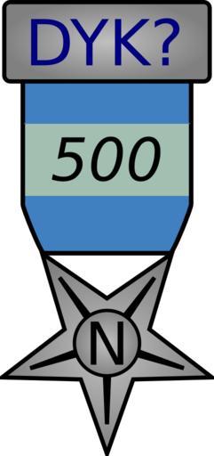 | Keywords: Dyk500N.svg own User Certes Proposed award for Award for 500 DYK nominations at Did you know Own work by Certes following request at WP GL/I Certes en Original upload log en wikipedia FtCG page en wikipedia Dyk500N svg wikitable Date/Time Dimensions User Comment - 16 08 2 January 2010 203 × 431 6 329 bytes Certes w en <nowiki> Proposed award for Award for 500 DYK nominations at Own work by following request at WP GL/I </nowiki> Wikipedia Did you know awards | ||||