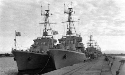 Keywords: Dywizjon na Helu.jpg Dywizjon Trałowców Bazowych w porcie na Helu 1960r Own Tatar65 T-43 class ocean minesweeper Minesweepers of Poland Naval Base Hel