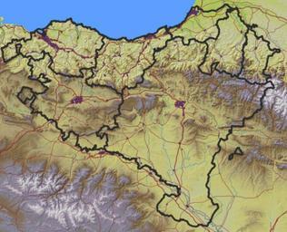 | Keywords: E3d txikia.png Laburpena eu Euskal Herriko mapa fisikoa DEM SRTM3 published by the NASA http //seamless usgs gov Cities own work digitalization based on Landsat imagery http //www landsat org Rivers own work digitalization based on French IGN information in the French side http //www ign fr/telechargement/MPro/produit/SCANS/SCAN1000_FR_SO_L93 zip and Spanish IGN information in the Spanish side http //www idee es/clientesIGN/wfsClient/index html lang EN Roads own work digitalization based on OpenStreetMap data French IGN information in the French side http //www ign fr/telechargement/MPro/produit/SCANS/SCAN1000_FR_SO_L93 zip and Spanish IGN information in the Spanish side http //www idee es/clientesIGN/wfsClient/index html lang EN Boundaries own work Map created with gvSIG ArcGIS and GIMP Asier Sarasua Garmendia Assar 2008-09-25 Maps of the Basque Country |
