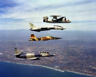 | Keywords: E-2C F-14A F-5E and TA-4F in flight 1984.JPEG Four U S Navy aircraft in flight in 1984 from top to bottom a Grumman E-2C Hawkeye aircraft from Airborne Early Warning Squadron VAW-110 Firebirds a Grumman F-14A Tomcat from Fighter Squadron VF-124 Gunfighters a Northrop F-5E Tiger II and a Douglas TA-4F Skyhawk aircraft from VF-126 Bandits http //www defenseimagery mil U S DefenseImagery photo VIRIN http //www dodmedia osd mil/DVIC_View/Still_Details cfm SDAN DNSC8500408 JPGPath /Assets/1986/Navy/DN-SC-85-00408 JPG DN-SC-85-00408 1984-05-21 PHCS B Lawson USN PD-USGov-Military-Navy ImageNote 1 1296 440 980 324 3000 2400 2 E-2C ImageNoteEnd 1 ImageNote 2 868 736 1248 296 3000 2400 2 F-14A ImageNoteEnd 2 ImageNote 3 868 1036 1136 292 3000 2400 2 F-5E ImageNoteEnd 3 ImageNote 4 384 1428 1488 508 3000 2400 2 TA-4F ImageNoteEnd 4 Northrop Grumman E-2C Hawkeye in flight Aircraft formation flight of F-14A Tomcat Aerial photographs of F-14 Tomcat in flight F-5 Tiger II TA-4F Skyhawk Fighter Squadron 124 United States Navy Fighter Squadron 126 United States Navy Airborne Early Warning Squadron 110 United States Navy |