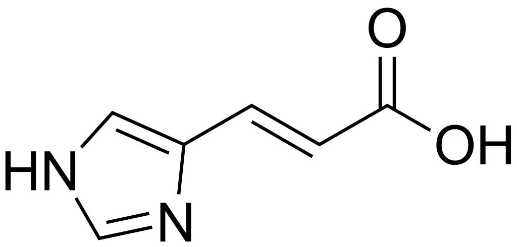 | Keywords: (E)-3-(1H-imidazol-4-yl)acrylic acid 200.svg validSVG Structure of E -3- 1H-imidazol-4-yl acrylic acid Own 2014-03-30 Emeldir <span class signature-talk >talk</span> Chemical structure verified 1S/C6H6N2O2/c9-6 10 2-1-5-3-7-4-8-5/h1-4H H 7 8 H 9 10 /b2-1+ LOIYMIARKYCTBW-OWOJBTEDSA-N 3465-72-3 Synonyms <small> E -3- 1H-Imidazol-4-yl acrylic acid E -3- 1H-Imidazol-5-yl -2-propenoic acid E -4-Imidazoleacrylic acid 2-Propenoic acid 3- 1H-imidazol-4-yl - 2-Propenoic acid 3- 1H-imidazol-4-yl - 9CI 3- 1 H -Imidazol-4-yl -2-propenoic acid 4-Imidazoleacrylic acid 3- 1H-Imidazol-4-yl -2-propenoic acid 3- 1H-Imidazol-4-yl acrylic acid 3- 4-Imidazolyl acrylic acid 4-Imidazole acrylic acid dihydrate 4-Imidazoleacrylic acid 5-Imidazoleacrylic acid beta 4 5 -Glyoxalinylacrylic acid Imidazole-4-acrylic acid Imidazole-4-acrylic acid 8CI Imidazoleacrylic acid ProtoCure Urocanic Acid Urocanic acid Urocanic acid - BioCis Pharma Urocaninic acid</small> PD-chem Carboxylic acids Imidazoles |