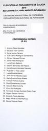 | Keywords: E. ao Parlamento de Galicia 2016. C. E. de Pontevedra. C 21.jpg gl Eleccións ao Parlamento de Galicia 2016 Circunscrición Electoral de Pontevedra 2016-09-25 13 56 05 own HombreDHojalata other versions cc-zero PD-SpanishGov es se borro el logotipo del partido político por copyright borrouse o logotipo do partido político por copyright Ballot papers for the 2016 Galician parliamentary election for the province of Pontevedra All medias supported by Wikimedia España in 2016 Ballot papers for Converxencia Vinteún |
