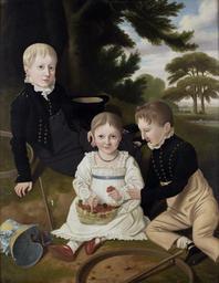 | Keywords: E W Gill The basket of cherries 1828.jpg The basket of cherries Signed and dated E W Gill 1828 Oil on canvas 117 x 91 cm http //www bonhams com/ Bonhams 1828 E W Gill British 19th century PD-old-100 Images from Bonhams 1828 paintings Three children in art Paintings of people with cherries Hoops in art Hoop rolling Paintings of children sitting on the ground outdoors Skeleton suits Paintings of girls with fruit baskets | ||||