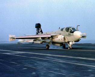 | Keywords: EA-6B VMAQ-2 landing on USS Nimitz (CVN-68) 1981.JPEG A U S Marine Corps Grumman EA-6B Prowler from Marine tactical electronic warfare squadron VMAQ-2 Playboys just after landing on the aircraft carrier USS Nimitz CVN-68 on 1 August 1981 VMAQ-2 Det Y was assigned to Carrier Air Wing 8 CVW-8 for a deployment aboard the Nimitz to the Mediterranean Sea from 3 August 1981 to 12 February 1982 Note that the VMAQ-2 detachment kept its tail code CY and did not adopt the CVW-8 tail code AJ U S DefenseImagery http //www defenseimagery mil photo VIRIN DN-SC-85-01956 http //www dodmedia osd mil/DVIC_View/Still_Details cfm SDAN DNSC8501956 JPGPath /Assets/1986/Navy/DN-SC-85-01956 JPG 1981-08-01 PH3 Robinson USN PD-USGov-Military-Navy USS Nimitz CVN-68 flight deck EA-6B Prowler US Marine Corps Marine Tactical Electronic Warfare Squadron 2 |