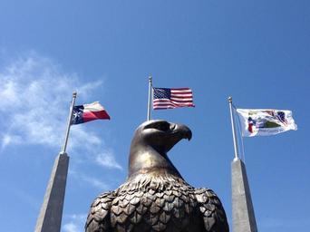 Keywords: eagle texas flags america blue sky sculpture monument statue creative artwork design metal work creativity metal metallic construction art