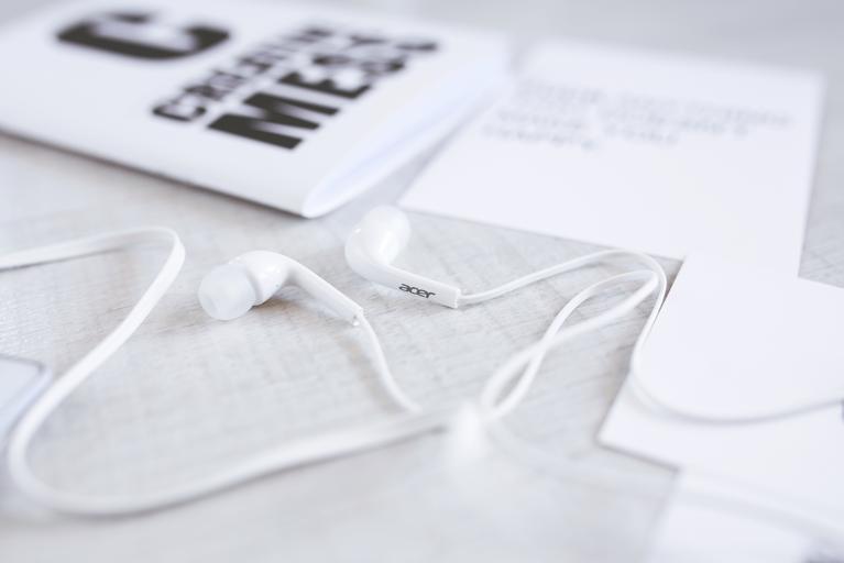 Keywords: earphones headphones white modern minimalist minimal desk light acer tech technology digital stereo music sound listening wire