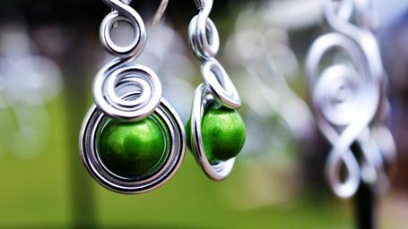 Keywords: earrings silver jewelry fashion metal shiny green craft outside wind