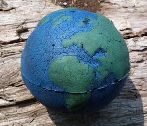 Keywords: earth ball plastic wood blue green toy