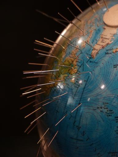 Keywords: earth globe magnetism north pole south pole earth magnet steel pins magnetic field experiment