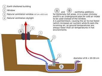 | Keywords: Earthship-ventilation-cooling-tube-schematic.svg en A picture of the workings of natural ventilation in a earthship earthship design for arid subtropical climate; uses windows tilted at 60° Schematic was based on a picture found in the book Earthship Vol 2 Systems and Components by Michael Reynolds EarthshipVentilation_new png 2013-04-27 23 30 UTC derivative work Anasofiapaixao EarthshipVentilation_new png Tirkfl EarthshipVentilation_new png Vectored slight rewording of the image text different look for the airflux arrow Anasofiapaixao EarthshipVentilation_new png Anasofiapaixao Anasofiapaixao exp h Sustainable architecture Earthship Natural indoor ventilation |