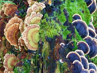 Keywords: outdoor THE EAST SIDE OF THE LOG HAD BRIGHT FUNGUS. THE EAST SIDE OF THE LOG HAD BRIGHT FUNGUS.