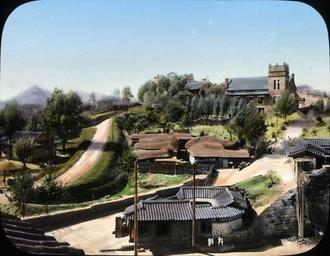 Keywords: East Gate Church, Seoul, (s.d.) (Taylor box21num65b).jpg en <br> East Gate Church Seoul s d This chuch started in the little building which appears at the left of the road just beyond the covered well Its membership quickly grew to 700+ and the congregation had to worship in relays The new church building on the hill also houses the Boy's School Date created 1908/1922 Publisher of the Digital Version University of Southern California Libraries Repository Name Methodist Church U S Legacy Record ID kda-m132 Photographer Methodist Episcopal Church Format photograph Rights Neither the General Conference nor any General Agency of The United Methodist Church successor to the Methodist Episcopal Church claims any interest in the photos or images Part of subcollection The Reverend Corwin Nellie Taylor Collection Coverage date 1908/1922 Contributing entity University of Southern California Repository Address Nashville Tennessee Part of collection Korean Digital Archive Donor Taylor Ewing Bevard Filename Taylor_box21num65a; Taylor_box21num65b Type images Geographic Subject City or Populated Place Seoul Geographic Subject Country Korea Compiler Taylor Corwin; Blood-Taylor Nellie 1908/1922 Methodist Episcopal Church http //digitallibrary usc edu/cdm/ref/collection/p15799coll48/id/2232 220px left PD-Japan-oldphoto Korean archive in the USC digital library Images from USC Digital Library uploaded by Fæ