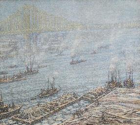 | Keywords: 'East River, New York, Winter (from Brooklyn Bridge)' by Frederick Usher De Voll, c. 1915.jpg en East River New York Winter from Brooklyn Bridge by Frederick Usher De Voll oil on canvas 81 3 by 91 1 cm c 1915 Sotheby's Frederick Usher De Voll 1915 PD-old-auto 1941 East River Frederick Usher De Voll |