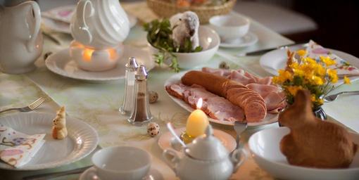 Keywords: easter breakfast easter table covered festival families gedeckter table lamb sausage hare