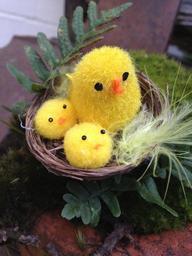 Keywords: easter chicks toy nest cute yellow feather fern family