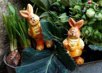 Keywords: easter rabbit decoration festival daffodils flowerpot ceramic figurines clay figures garden gnomes