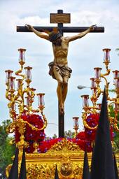 Keywords: easter seville andalusia spain procession brotherhood sisterhood festival religion believer beliefs catholics tradition traditional christ crucified cruz step candlestick sacrifice father forgiveness death calvary image passion
