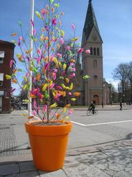 Keywords: easter skövde sweden church street pot springs colors sky blue house