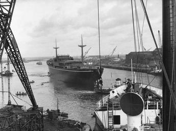 | Keywords: sunderland shipbuilding j.l. thompson & sons ltd jlthompsonsonsltd north sands sunderland northsandssunderland eastern ranger easternranger ship launch shiplaunch industry cargo ship cargoship tug boats tugboats river wear riverwear blackandwhite monochrome outdoor black and white View of the cargo ship ‘Eastern Ranger’ afloat after launch at the North Sands shipyard of J.L. Thompson & Sons, Sunderland, 20 November 1961 (TWAM ref. DS.JLT/4/PH/1/707/3/2). This set celebrates the achievements of the famous Sunderland shipbuilding firm Joseph L. Thompson & Sons. The company’s origins date back to 1846 when the firm was known as Robert Thompson & Sons. Robert Thompson senior died in 1860, leaving his second son Joseph Lowes Thompson in control. In 1870 the shipyard completed its last wooden vessel and was then adapted for iron shipbuilding. By 1880 the firm had expanded its operations over much of North Sands and in 1884 completed the construction of Manor Quay, which served as fitting out and repair facilities. For many years in the late nineteenth century the yard was the most productive in Sunderland and in 1894 had the fourth largest output of any shipyard in the world. The Depression affected the firm severely in the early 1930s and no vessels were launched from 1931 to 1934. However, during those years the company developed a hull design giving greater efficiency and economy in service. During the Second World War the prototype developed by Joseph L. Thompson & Sons proved so popular that it was used by the US Government as the basis of over 2,700 Liberty ships built at American shipyards between 1942 and 1945. After the War the North Sands shipyard went on to build many fine cargo ships, oil tankers and bulk carriers. Sadly the shipyard closed in 1979, although it briefly reopened in 1986 to construct the crane barge ITM Challenger. (Copyright) We're happy for you to share these digital images within the spirit of The Commons. Please cite 'Tyne & Wear Archives & Museums' when reusing. Certain restrictions on high quality reproductions and commercial use of the original physical version apply though; if you're unsure please email archives@twmuseums.org.uk View of the cargo ship ‘Eastern Ranger’ afloat after launch at the North Sands shipyard of J.L. Thompson & Sons, Sunderland, 20 November 1961 (TWAM ref. DS.JLT/4/PH/1/707/3/2). This set celebrates the achievements of the famous Sunderland shipbuilding firm Joseph L. Thompson & Sons. The company’s origins date back to 1846 when the firm was known as Robert Thompson & Sons. Robert Thompson senior died in 1860, leaving his second son Joseph Lowes Thompson in control. In 1870 the shipyard completed its last wooden vessel and was then adapted for iron shipbuilding. By 1880 the firm had expanded its operations over much of North Sands and in 1884 completed the construction of Manor Quay, which served as fitting out and repair facilities. For many years in the late nineteenth century the yard was the most productive in Sunderland and in 1894 had the fourth largest output of any shipyard in the world. The Depression affected the firm severely in the early 1930s and no vessels were launched from 1931 to 1934. However, during those years the company developed a hull design giving greater efficiency and economy in service. During the Second World War the prototype developed by Joseph L. Thompson & Sons proved so popular that it was used by the US Government as the basis of over 2,700 Liberty ships built at American shipyards between 1942 and 1945. After the War the North Sands shipyard went on to build many fine cargo ships, oil tankers and bulk carriers. Sadly the shipyard closed in 1979, although it briefly reopened in 1986 to construct the crane barge ITM Challenger. (Copyright) We're happy for you to share these digital images within the spirit of The Commons. Please cite 'Tyne & Wear Archives & Museums' when reusing. Certain restrictions on high quality reproductions and commercial use of the original physical version apply though; if you're unsure please email archives@twmuseums.org.uk |