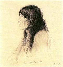 | Keywords: Eastman Johnson - Kenne waw be mint - ejb - fig 100 - pg 225.jpg Eastman Johnson - Kenne waw be mint - Scanned from Eastman Johnson Painting America - Charcoal and Crayon on Paper - 8 x 7 5 in - 1857 - fig 100 - pg 225 Scanned from Eastman Johnson Painting America Creator Eastman Johnson Author died more than 70 years ago - public domain PD-old-100 Portraits by Eastman Johnson Charcoal portraits | ||||