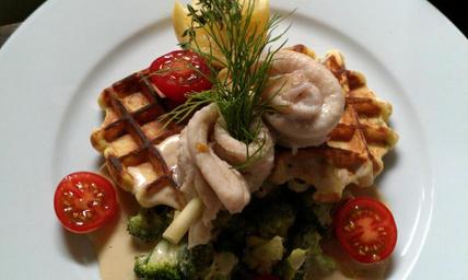 Keywords: eat court food meal fish dish restaurant