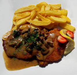 Keywords: eat food meat court french mushrooms schnitzel delicious