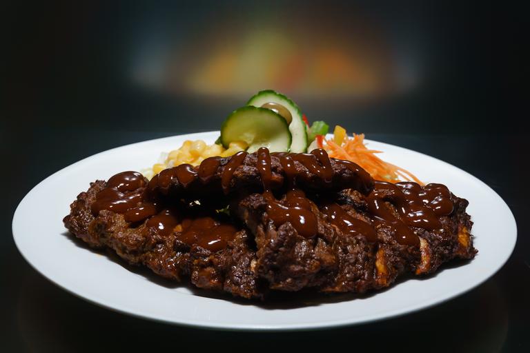 Keywords: eat ketchup restaurant spare ribs food delicious tasty bbq ribs grilled meat