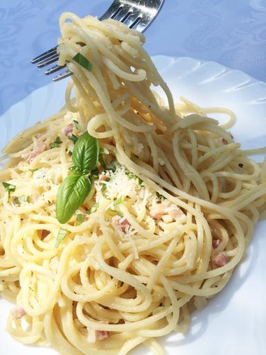 Keywords: eating pasta kitchen dinner food taste spaghetti an italian dish tasty eggs meal eat basil luncheon dish