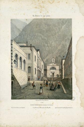 | Keywords: Eaux-Bonnes (Basses-Pyrénées) - L'établissement Thermal et la Chapelle - Fonds Ancely - B315556101 A MERCEREAU 7 018.jpg  Impression en 3 coul par Frick frères à Paris Fait partie d'un ensemble de recueils de lithographies de Mercereau composés de lithographies provenant de La France de nos jours vaste suite publiée par livraisons de 1853 à 1876 et comprenant 475 planches en deux tirages l'un à deux teintes noir et bistre l'autre en couleurs Les libraires ont réuni ces planches en albums de composition variable quant au nombre de planches et aux dessinateurs Asselineau Mercereau Maurice Deroy etc Un titre Les Pyrénées par Ch Mercereau; Bagnères-de-Luchon par Ch Mercereau était frappé sur le plat supérieur de la reliure de l'album ainsi que le nom du Libraire pour lequel il était réalisé La plupart des recueils de ces planches pyrénéennes portent le nom de Sajous libraire à Bagnères-de-Luchon Pl 1 à 18 numérotées de 370 à 386 Pl 374 pl 5 et 6 en double -- Pl 19 20 et 21 numérotées respectivement 407 415 et 418 Ces trois pl ont été dessinées et lithographiées par Asselineau -- Pl 22 23 et 24 numérotées 438 439 et 440 -- Pl 22 lith par Aubrun -- Pl 25 numérotée 441 -- Pl 26 à 40 numérotées de 327 à 341 -- Pl 41 à 46 numérotées de 363 à 368 -- Pl 47 numérotée 369 -- Pl 48 num 292 -- Pl 49 et 50 num 264 et 265 -- Pl 51 et 52 num 268 et 269 -- Pl 53 à 55 num de 293 à 295 -- Pl 56 num 300 -- Pl 57 à 59 num de 307 à 309 -- Pl 60 à 70 num de 316 à 326 -- Pl 71 num 63 dessin et lith d'Asselineau imprimerie Destouches -- Pl 72 et 73 num 87 et 88 dessin et lith d'Asselineau imprimerie Destouches -- Pl 74 num 124 signée Lebreton éditée chez Lalonde à Paris et imprimée chez Becquet frères à Paris -- Pl 75 num 161 dessin et litho d'Asselineau imprimerie Destouches --Pl 76 à 78 num de 207 à 209 -- Pl 79 à 81 num de 211 à 213 -- Pl 82 num 220 dessin et lith de Maurice imprimerie Destouches -- Pl 83 à 86 num de 226 à 229 -- Pl 87 et 88 num 234 et 235 -- Pl 89 à 91 num de 273 à 275 -- Pl 92 et 93 num 290 et 291 Pièces jointes 6 pl sépia dont certaines sont des doubles du recueil de Mercereau Les cinq premières planches sont numérotées respectivement 318 321 324 331 386 La dernière planche n'est pas extraite de La France de nos jours mais de L'Espagne pittoresque et monumentale Ces six planches sont signées Mercereau éditées chez Sinnet et imprimées chez Frick frères Ancely René 1876 - 1966 Possesseur fre public domain domaine public B315556101_A_MERCEREAU_7_018 jpg image/jpeg 1 f de pl lithogr ; 31 cm oblong Frick frères Imprimeur Sinnet F Éditeur http //numerique bibliotheque toulouse fr/collect/general/index/assoc//ark /74899/B315556101_A_MERCEREAU_7_018 dir/B315556101_A_MERCEREAU_7_018 jpg Bibliothèque municipale de Toulouse A-MERCEREAU 7-18 Creator Charles Mercereau http //catalogues toulouse fr/web2/tramp2 exe/do_keyword_search/log_in setting_key BMT1 servers 1home query p001642 St Jean-de-Luz intérieur de l'Eglise St Jean-de-Luz le Château de l'Infante Biarritz Vue générale prise du Phare Château de Mauvesin près Bagnères-de-Bigorre Hautes Pyrénées Bagnères de Bigorre Hautes Pyrénées - Intérieur de l'Eglise des Carmes en couleurs Bagnères de Bigorre Hautes Pyrénées - Intérieur de l'Eglise des Carmes Bagnères-de-Bigorre - Eglise et couvent des Carmes Bagnères-de-Bigorre Hautes-Pyrénées - Tour des Jacobins Cascade et Pont de Magenta Vallée de l'Esponne Hautes Pyrénées Cascade de Trémes-Aïgues Vallée de Grip Hautes Pyrénées St Sauveur Hautes Pyrénées - Le Pont Napoléon Bayonne - Eglise St André Arreau et la Vallée d'Aure Hautes Pyrénées - Vue prise au dessus de la route du Col d'Aspin Auch - Vue prise sur les bords du Gers Auch - Vue de la Cathédrale Auch - Intérieur de la Cathédrale Bagnères-de-Bigorre - Vue Générale prise de la Fontaine ferrugineuse Nantes - Vue de l'Eglise Ste Croix Le Croisic - Plage des Baigneurs et Etablissement de Bains Le Folgoët - Vue de l'Eglise Brèche de Roland prise de Gèdres Hautes Pyrénées Chapelle du couvent de Pouëlahun i e Pouey Lahun - Vallée d'Azun Hautes Pyrénées Eglise des Templiers à Luz Le Pont de Scia - Route de Luz à Gavarnie Hautes-Pyrénées Vue de l'établissement de la Raillière près Cauterets Hautes-Pyrénées Vue générale de Cauterets prise du Mamelon Vert Hautes-Pyrénées Vue du Fort de Lourdes Hautes-Pyrénées Vue d'Argelès-de-Bigorre Hautes-Pyrénées Vue de St Sauveur Hautes-Pyrénées Le Pas de l'Echelle Route de Gavarnie Hautes-Pyrénées Fond de la Vallée d'Argelès prise de la terrasse de St Savin Hautes-Pyrénées Place Grammont à Pau Basses-Pyrénées Vue générale des Eaux-Bonnes Basses-Pyrénées Barèges et la Vallée du Bastan Hautes-Pyrénées Chute supérieure du Pont d'Espagne Hautes-Pyrénées La grotte miraculeuse à Lourdes Hautes-Pyrénées Eglise de Bétharram et Pont de Lestelle Basses Pyrénées Cascade du Cerizet Près Cauterets Hautes-Pyrénées Pic du Midi d'Ossau 2885m Basses Pyrénées - Vue prise du 3e plateau de Bious-Artigues Pau - Vue prise de la terrasse du Château Toulouse - Cloître du Musée Galerie du Moyen-Age Pau - Vue du Château prise du Parc Toulouse - Cloître du Musée et Clocher des Augustins Toulouse - La maison de pierre fragment de la façade Toulouse - Intérieur de St Sernin St Jean-de-Luz Fort du Socoa Toulouse - Vue du Capitole Bordeaux Vue de la Porte du Caillau i e Cailhau Bordeaux Porte de la grosse Cloche Bordeaux Vue des Quinconces Bordeaux - Vue de la Tour et de l'Eglise de St Michel Toulouse - Vue du Pont de pierre prise du Quai de Brienne Toulouse - Abside de l'Eglise de St Sernin de l'an 1097 Toulouse - Choeur de la Cathédrale St Etienne Rouen - Hôtel de Bourgtheroulde Biarritz - Vue des Bains Napoléon et du Casino Biarritz - Vue des Bains du Port Vieux Biarritz - Vue de l'Entrée de la Ville à l'arrivée de Bayonne Le Lac Bleu Hautes-