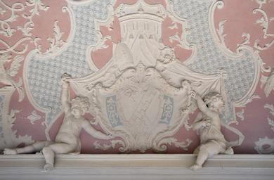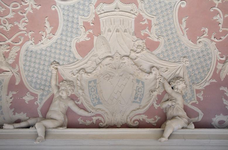 | Keywords: Eberbach Mönchsrefektorium Decke Wappen Zisterzienserbalken 01.jpg Kloster Eberbach Mönchsrefektorium Stuckdecke mit einem Wappenschild mit Zisterzienserbalken und Abtsstab own 2015 WolfD59 Mönchsrefektorium Kloster Eberbach Coats of arms of abbots of Kloster Eberbach Stuccos in Hesse Reliefs of coats of arms in Kloster Eberbach Zisterzienserbalken as bend sinister Croziers in heraldry | ||||