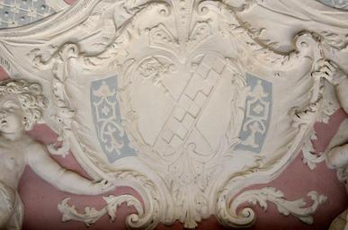 | Keywords: Eberbach Mönchsrefektorium Decke Wappen Zisterzienserbalken 02.jpg Kloster Eberbach Mönchsrefektorium Stuckdecke mit einem Wappenschild mit Zisterzienserbalken und Abtsstab own 2015 WolfD59 Mönchsrefektorium Kloster Eberbach Coats of arms of abbots of Kloster Eberbach Stuccos in Hesse Reliefs of coats of arms in Kloster Eberbach Zisterzienserbalken as bend sinister Croziers in heraldry | ||||