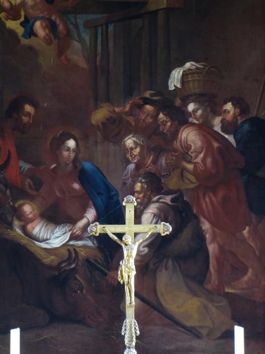| Keywords: Ebersmunster Abbatiale049.JPG fr Alsace Bas-Rhin Ebersmunster Église abbatiale Saint-Maurice Maître-autel 1727-1820 Tableau Adoration des bergers 1820 own 2015 Ralph Hammann cc-by-sa-4 0 Artwork / Œuvre d'art / Kunstwerk oil canvas cm 345 235 Abbatiale Saint-Maurice Ebersmunster Maître-autel IM67009301 object history Les tableaux du maître-autel sont interchangeables et selon la tradition ils auraient été au nombre de 12 ; il en reste trois l'Adoration des bergers du 18e siècle d'après le tableau de Rubens au musée de Rouen le martyre et l'apothéose de saint Maurice du début du 19e siècle et la remise du scapulaire à saint Benoît et au bienheureux Simon Stock qui serait une oeuvre de F Haberer en 1820 other versions Ralph Hammann PD-old accession number Maître-autel de Saint-Maurice d'Ebersmunster Objets monuments historiques in Bas-Rhin church paintings Baroque church paintings in Alsace 19th-century church paintings in Alsace Photographs of Ebersmunster by Ralph Hammann Taken with Canon PowerShot SX20 IS 19th-century paintings of adoration by the shepherds Adoration by the shepherds in paintings Details of 19th-century paintings 1820 oil on canvas paintings in France |