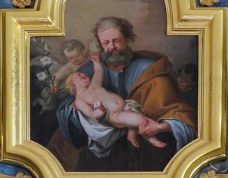 | Keywords: Ebersmunster Abbatiale171.JPG Alsace Bas-Rhin Ebersmunster Église abbatiale Saint-Maurice Autel secondaire de Sainte-Odile XVIIIe Tableau du couronnement saint Joseph et l'enfant Jésus 1807 own 2015 Ralph Hammann cc-by-sa-4 0 Artwork / Œuvre d'art / Kunstwerk saint Joseph et l'enfant Jésus XVIIIe oil canvas Abbatiale Saint-Maurice Ebersmunster Autel secondaire de Sainte-Odile IM67007589 object history Ces tableaux d'autels signés par Franz Joseph Stoeber celui de sainte Scholastique date de 1781 celui de sainte Odile de 1807 remplacent les œuvres d'origine ornant les autels retables secondaires de 1730 ; les tableaux des couronnements ne sont pas signés mais datent également du 18e siècle other versions Ralph Hammann PD-old accession number Taken with Canon PowerShot SX20 IS Photographs of Ebersmunster by Ralph Hammann Autel de Sainte-Odile Ebersmunster Objets monuments historiques in Bas-Rhin church paintings Baroque church paintings in Alsace Paintings of Christian saints in France 19th-century church paintings in Alsace 1807 oil on canvas paintings in France 1807 works in Alsace Saint Joseph and Jesus Christ as a baby Paintings of Saint Joseph in France |