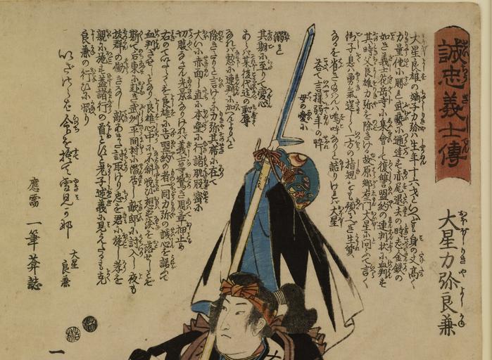 | Keywords: Ebiya Rinnosuke - Seichu gishi den - Walters 956 - Detail A.jpg Walters Art Museum artwork Creator Ebiya Rinnosuke between 1847 1848 late Edo pigments mulberry paper cm 36 2 25 5 accession number 95 6 36717 Mr and Mrs C R Snell Jr date and mode of acquisition unknown Walters Art Museum Gift of Mr and Mrs C R Snell Jr 1986 Signature Ichiyusai Kuniyoshi ga The Nature of Loyalty Japanese Warrior Prints of the Nineteenth Century The Walters Art Gallery Baltimore 1989 place of origin Japan Walters Art Museum license 2D Japanese prints in the Walters Art Museum Historic samurai prints Ebiya Rinnosuke Media contributed by the Walters Art Museum needs category review |