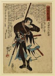 | Keywords: Ebiya Rinnosuke - Seichu gishi den - Walters 957.jpg Walters Art Museum artwork Creator Ebiya Rinnosuke Yato Yomoshichi Norikane holding his spear in his right hand behind his back and drinking from a porcelain cup in his left hand between 1847 1848 late Edo pigments mulberry paper cm 36 2 25 5 accession number 95 7 5087 Mr and Mrs C R Snell Jr date and mode of acquisition unknown Walters Art Museum Gift of Mr and Mrs C R Snell Jr 1986 Signature Ichiyusai Kuniyoshi ga The Nature of Loyalty Japanese Warrior Prints of the Nineteenth Century The Walters Art Gallery Baltimore 1989 place of origin Edo present-day Tokyo Japan Walters Art Museum license 2D Japanese prints in the Walters Art Museum Historic samurai prints Ebiya Rinnosuke Media contributed by the Walters Art Museum needs category review |