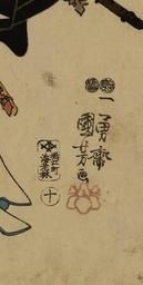 | Keywords: Ebiya Rinnosuke - Seichu gishi den - Walters 9514 - Mark A.jpg Walters Art Museum artwork Creator Ebiya Rinnosuke Isoai Juroemon Masahisa making a stroke with his naginata between 1847 1848 late Edo pigments mulberry paper cm 36 2 25 5 accession number 95 14 36890 Mr and Mrs C R Snell Jr date and mode of acquisition unknown Walters Art Museum Gift of Mr and Mrs C R Snell Jr 1986 Signature Ichiyusai Kuniyoshi ga The Nature of Loyalty Japanese Warrior Prints of the Nineteenth Century The Walters Art Gallery Baltimore 1989 place of origin Edo present-day Tokyo Japan Walters Art Museum license 2D Japanese prints in the Walters Art Museum Historic samurai prints Ebiya Rinnosuke Media contributed by the Walters Art Museum needs category review |