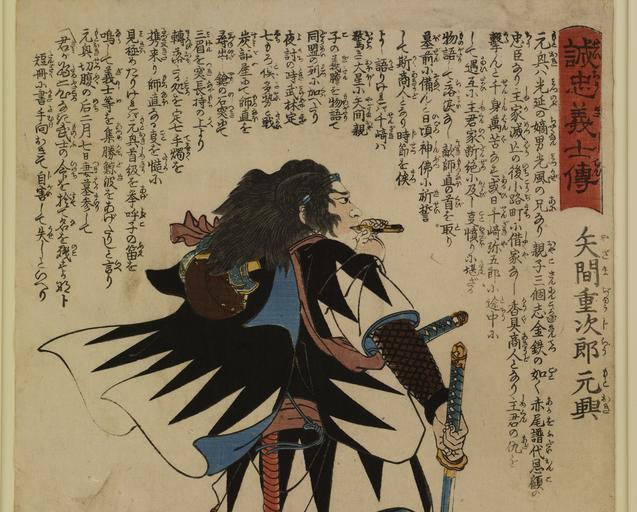 Keywords: Ebiya Rinnosuke - Seichu gishi den - Walters 9517 - Detail A.jpg Walters Art Museum artwork Creator Ebiya Rinnosuke Yazama Jujiro Motooki blowing a signal whistle a drawn sword in his other hand between 1847 1848 late Edo pigments mulberry paper cm 36 2 25 5 accession number 95 17 5328 Mr and Mrs C R Snell Jr date and mode of acquisition unknown Walters Art Museum Gift of Mr and Mrs C R Snell Jr 1986 Signature Ichiyusai Kuniyoshi ga The Nature of Loyalty Japanese Warrior Prints of the Nineteenth Century The Walters Art Gallery Baltimore 1989 place of origin Japan Walters Art Museum license 2D Japanese prints in the Walters Art Museum Historic samurai prints Ebiya Rinnosuke Media contributed by the Walters Art Museum needs category review |