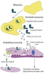 | Keywords: Ebola Pathenogensis path-hu.svg en Host immune responses to Ebola virus and cell damage due to direct infection of monocytes and macrophages cause the release of cytokines associated with inflammation and fever Infection of endothelial cells also induces a cytopathic effect and damage to the endothelial barrier that together with cytokine effects leads to the loss of vascular integrity Transient expression of Ebola virus GP in human umbilical vein endothelial cells or 293T cells causes a reduction of specific integrins primary molecules responsible for cell adhesion to the extracellular matrix and immune molecules on the cell surface Cytokine dysregulation and virus infection may synergize at the endothelial surface promoting hemorrhage and vasomotor collapse hu A monociták direkt fertőzése és a következményes citokinfelszabadulás gyulladásos reakciót és lázat okoz károsítja az ereket bélelő endotélsejteket amiket a vírus közvetlenül is megfertőz A sejtek pusztulása és leválása az érfalról vérzékenységet és a keringési rendszer instabilitását sokkot okoz 2014-08-04 01 31 19 Ebola Pathenogensis path svg Ebola Pathenogensis path svg User ChyranandChloe derivative work Kohlins Fordítás magyarra Translation to Hungarian Kohlins Ebola Pathenogensis path svg cc-zero Uploaded with UploadWizard Ebola pathogenesis |