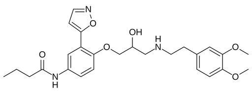Keywords: Ecastolol.svg Chemical structure of ecastolol Own 21 16 29 March 2014 UTC Ed Edgar181 Beta blockers Isoxazoles Un-N-substituted anilides Dimethoxybenzenes