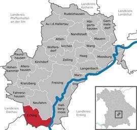 | Keywords: Eching in FS.svg DeLocMaps Eching Eching Landkreis Freising Landkreis Freising District of Freising Freising district L'arrondissement de Freising Arrondissement de Freising Bayern Bavière Bavaria Adobe Illustrator <br/> own based on <br/> File Municipalities_in_Bavaria svg by TUBS 2010-05-07 Hagar66 based on work of TUBS Hagar66/licensesection Attribution TUBS/Credits Maps of Eching Locator maps of municipalities in Landkreis Freising Location not applicable | ||||