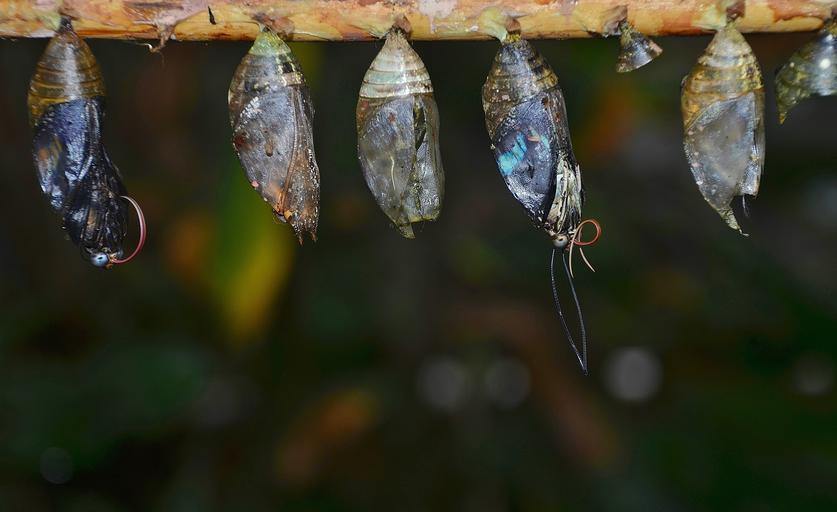 Keywords: eclosion cocoons larva larvae insect larvae macro nature parides iphidamas butterfly papilionidae
