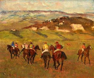 | Keywords: Edgar Degas - Jockeys on Horseback before Distant Hills.jpg Jockeys on Horseback before Distant Hills oil canvas cm 44 9 54 9 Detroit Institute of Arts http //www dia org/object-info/604d325e-dd03-4b2f-9a4f-39982c523b6e aspx position 2 The Detroit Institute of Arts accession number 1998 65 credit line Gift of W Warren and Virginia Shelden in memory of Mrs Allan Shelden Detroit Institute of Arts 1884 creator Edgar Degas Other versions http //www dia org/user_area/zoom/1998 65 jpg http //www dia org/user_area/zoom/1998 65-S1 jpg PD-old-auto 1917 DEFAULTSORT Degas Paintings of horse racing by Edgar Degas 1884 French paintings in the Detroit Institute of Arts |