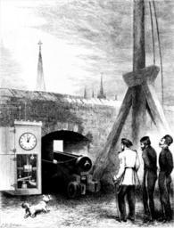| Keywords: Edinburgh Castle Noon Gun 1861.png en Method of firing the One O'Clock Gun from Edinburgh Castle actuated by electrical signals from the Calton Hill Observatory Good Words 1862 April Scanned from Astronomical Observations made at the Royal Observatory Edinburgh Vol XII 1863 1862-04-01 PD-OLD-100 Engraving of Edinburgh Castle Edinburgh Scotland United Kingdom PD-old Edinburgh Castle in drawings Firing of the One O'Clock Gun One O'Clock Gun Soldiers at Edinburgh Castle | ||||