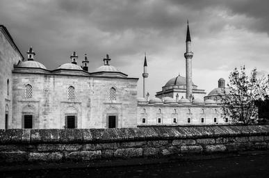 Keywords: edirne cami madrasah turkey architecture islam istanbul worship peace city center black and white day travel religion judaism aesthetics prayer synagogue white the religions ' garden the minarets on christianity