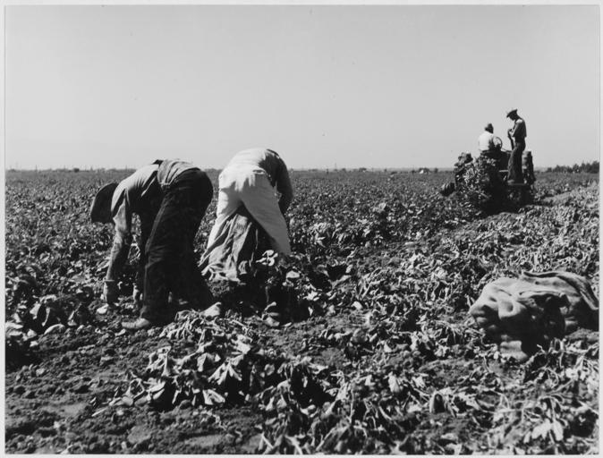 | Keywords: Edison, Kern County, California. Pickers sack early potatoes, dug by mechanical digger on large-scal . . . - NARA - 521805.jpg Scope and content Full caption reads as follows Edison Kern County California Pickers sack early potatoes dug by mechanical digger on large-scale ranch Wages are 35 cents per hour Kern County planted 27 250 acres in potatoes in 1940 General notes 521805 Local identifier 83-G-41561 Department of Agriculture Bureau of Agricultural Economics Division of Economic Information ca 1922 - ca 1953 NARA-Author Lange Dorothea 1895-1965 Photographer 1372774 <br /> Still Picture Records Section Special Media Archives Services Division NWCS-S National Archives at College Park 8601 Adelphi Road College Park MD 20740-6001 1940-04-11 Record group Record Group 83 Records of the Bureau of Agricultural Economics 1876 - 1959 Record group ARC 412 Photographic Prints Documenting Programs and Activities of the Bureau of Agricultural Economics and Predecessor Agencies compiled ca 1922 - ca 1947 documenting the period ca 1911 - ca 1947 Series ARC 521048 File unit File unit ARC Variant control numbers NAIL Control Number NWDNS-83-G-41561 Other versions <gallery> File Edison _Kern_County _California _Pickers_sack_early_potatoes _dug_by_mechanical_digger_on_large-scal_ _ _ _-_NARA_-_521805 tif tif File Edison _Kern_County _California _Pickers_sack_early_potatoes _dug_by_mechanical_digger_on_large-scal_ _ _ _-_NARA_-_521805 jpg jpg </gallery> NARA-cooperation PD-USGov Dorothea Lange Edison California Manual harvesting Potato harvest 1940 in California Fields in California |