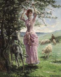 | Keywords: Edmond-Louis Dupain - Springtime.jpg Artwork Edmond-Louis Dupain 1847 - 1933 en Springtime century 19 oil on canvas cm 106 5 87 signed bottom right E Dupain http //www bonhams com/auctions/16018/lot/148/ Bonhams From the fashion probably around 1880 compare this PD-old-auto-1923 1933 Uploaded with UploadWizard Edmond-Louis Dupain Paintings of women with dogs Standing Women's arms in art Paintings of people wearing hats People with animals in art People with plants Women with chin up in art Standing females in art 19th-century greyhounds in art Sheep in art |